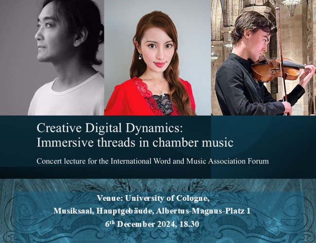 Event in Cologne, Germany, 6 December 2024: Concert-lecture presented for the International Word and Music Association Forum, reimagining chamber music by Shostakovich, Vitali, Fauré, and Debussy through immersive concert settings.